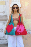 The elaboration technique is backstrap loom, which is 100% handmade. After the bag is finished, the heart is traced and embroidered by hand. The thread is 100% cotton.