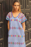Einteiliges Huipil, unten leicht offen. Das Wort Huipil kommt vom Nahuatl-Wort Huipilli, was Bluse oder verziertes Kleid bedeutet. Der Huipil spricht und hat seine eigene Stimme. Durch jede Stickerei und jeden Stich, den Handwerker darin eingefangen haben, erzählt es Geschichten und vermittelt Gefühle.
