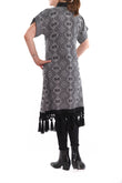 Das Design ist etwas ganz Besonderes, da es einen verarbeiteten Stoff mit einem sehr femininen Schnitt kombiniert. Der Pedalwebstuhl wird im Gegensatz zum Backstrap-Webstuhl mit beiden Händen und Füßen hergestellt.