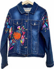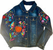 The Tenango denim jacket is a real eye-catcher. Their beautiful handmade embroideries are called Tenangos, a Mexican cultural Heritage. It is distinguished by its bright and cheerful colors and the magical representation of the flowers and birds of the region.