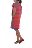Huipil Dress San Juan pink with blue brocade