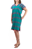 Huipil Dress San Juan turquoise with pink brocade