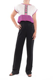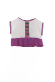 The Lourdes crop top blouse white with purple embroidery was designed by Lourdes Toriello from Queretaro. She works directly with artisans from Chiapas, Oaxaca and Estado de Mexico to include their looms in her garments and achieve a very contemporary fusion.