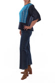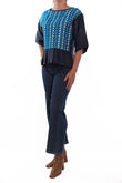 The Lourdes long sleeve blouse blue was designed by Lourdes Toriello from Queretaro. She works directly with artisans from Chiapas, Oaxaca and Estado de Mexico to include their looms in her garments and achieve a very contemporary fusion.