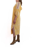 Elaboration time of the Odilia Dress yellow with white and brown embroidery takes around 3 weeks.
