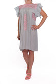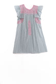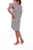 The dress is made of cotton with hand embroidered flowers around the neck and at the center. It has ruffles on the sleeves which gives it an even more romantic touch compared to the classic version of San Antonino.